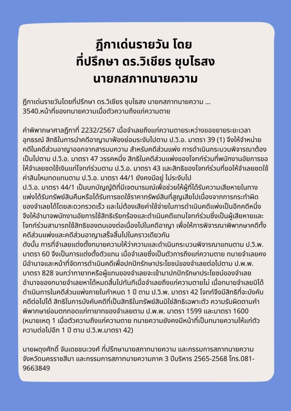 ฎีกาเด่นรายวันโดยที่ปรึกษา ดร.วิเชียร ชุบไธสง นายกสภาทนายความ … 3540 22/02/202523/02/2025Peerapongรวมคำพิพากษาศาลฎีกา FacebookFacebookXXLINELine