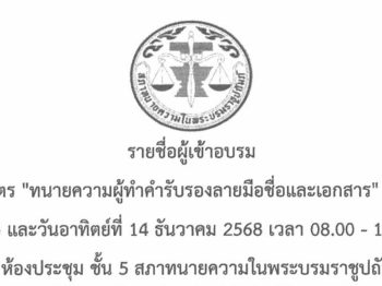 ประกาศรายชื่อผู้เข้าอบรม หลักสูตรทนายความผู้ทำคำรับรองล […]