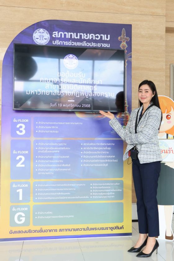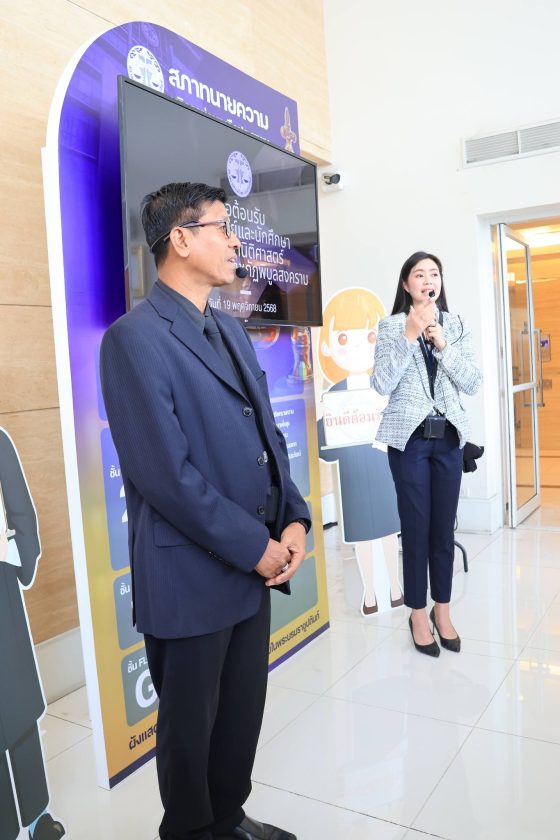 เมื่อวันที่ 19 พฤศจิกายน 2568 เวลา 13.00 น. คณาจารย์และนักศึกษามหาวิทยาลัยราชภัฎพิบูลสงคราม จังหวัดพิษณุโลก จำนวน 60 คน ได้เดินทางมาศึกษาดูงาน ณ สภาทนายความในพระบรมราชูปถัมภ์ กรุงเทพมหานคร โดยมี นางสาวเกศศิริ เรืองกาญจนเศรษฐ์ กรรมการประชาสัมพันธ์/กรรมการปฏิคม ดร.พิษณุ โหระกุล กรรมการอำนวยการสำนักฝึกอบรมวิชาว่าความ แห่งสภาทนายความ นายจรุงศักดิ์ ชะโกฏิ ทนายความ นายสมนึก สมศักดิ์ อนุกรรมการปฏิคม ร่วมให้การต้อนรับ โดยมีนางสาวอรุโณทัย ศิริบุตร อนุกรรมการปฏิคม เป็นพิธีกรดำเนินรายการ