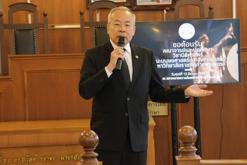เมื่อวันที่ 13 มีนาคม 2569 เวลา 09.30 น. ณ ห้องศาลจำลอง ชั้น 5 สภาทนายความในพระบรมราชูปถัมภ์ กรุงเทพมหานคร : ดร.ธนพล คงเจี้ยง นายกสภาทนายความ มอบหมายให้ นายสมศักดิ์ อัจจิกุล เลขาธิการสภาทนายความ ให้การต้อนรับคณะอาจารย์และนักศึกษามหาวิทยาลัยราชภัฏกำแพงเพชร ในโอกาสเดินทางมาศึกษาดูงานสภาทนายความ โดยมีนายชัยวัฒน์ บุญเกื้อ นายทะเบียนสภาทนายความ บรรยายเรื่อง บทบาทภารกิจงานทะเบียนสภาทนายความ พร้อมด้วย ดร.ณัฐนันณ์ สุวรรณมณี กรรมการอำนวยการสำนักฝึกอบรมวิชาว่าความ แห่งสภาทนายความ นายเกียรติกุล ช่วยนุ่ม เลขานุการสำนักฝึกอบรมฯ บรรยายเรื่อง การฝึกอบรมวิชาว่าความ และ นายสวัสดิ์ เจริญผล แนะนำขั้นตอนการรับเรื่องคดีมรรยาททนายความ โดยมีนายสุธน ฮาเมนน์ นางสาวพรรณพิไล วิมลรัตน์ นางสาวณัฐณิชา สุปินะ เป็นพิธีกรดำเนินรายการและนำคณะนักศึกษาดูงานของสภาทนายความในส่วนงานของสำนักงานช่วยเหลือประชาชนทางกฎหมาย สำนักงานทะเบียนสภาทนายความ สำนักฝึกอบรมวิชาว่าความ และสำนักงานมรรยาททนายความ พร้อมถ่ายภาพร่วมกัน