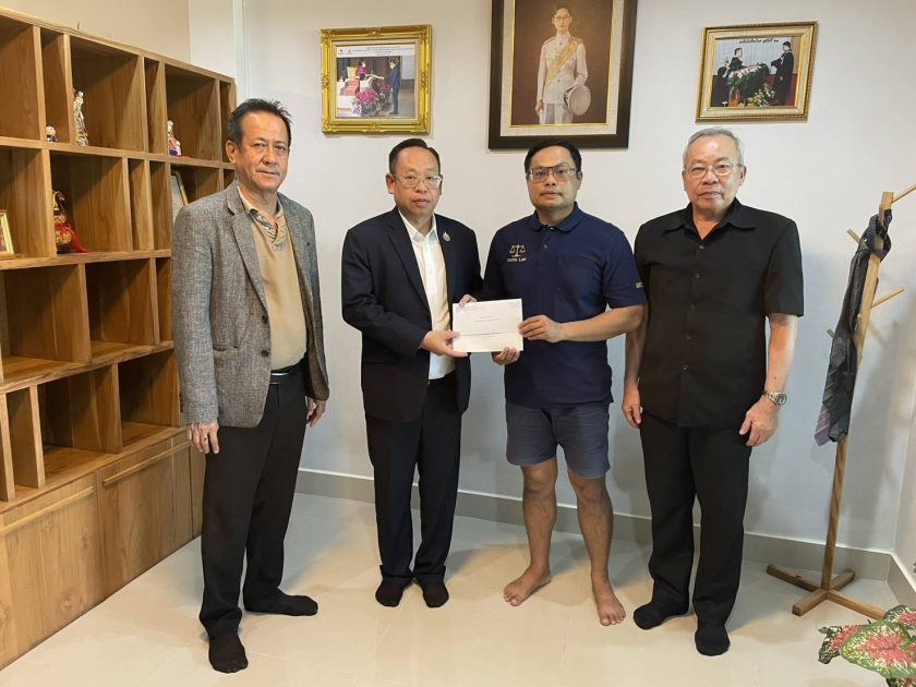 นายสมศักดิ์ อัจจิกุล เลขาธิการสภาทนายความ นายรณภพ วัตตะสิงห์ กรรมการบริหารภาค 9 นายธนัท พิทักษ์ ทนายความจังหวัดสงขลา นายปรีชา รองเลื่อน ทนายความจังหวัดพัทลุง นายฉลอง จิเหลียง และนายวิโรจน์ สงรักษ์ ทนายความจังหวัดสตูล พร้อมคณะกรรมการภาค 9 เข้าเยี่ยมทนายความผู้ได้รับความเดือดร้อนและมอบเงินสวัสดิการเพื่อเป็นกำลังใจให้เพื่อนสมาชิกทนายความที่ประสบภัยน้ำท่วมหาดใหญ่