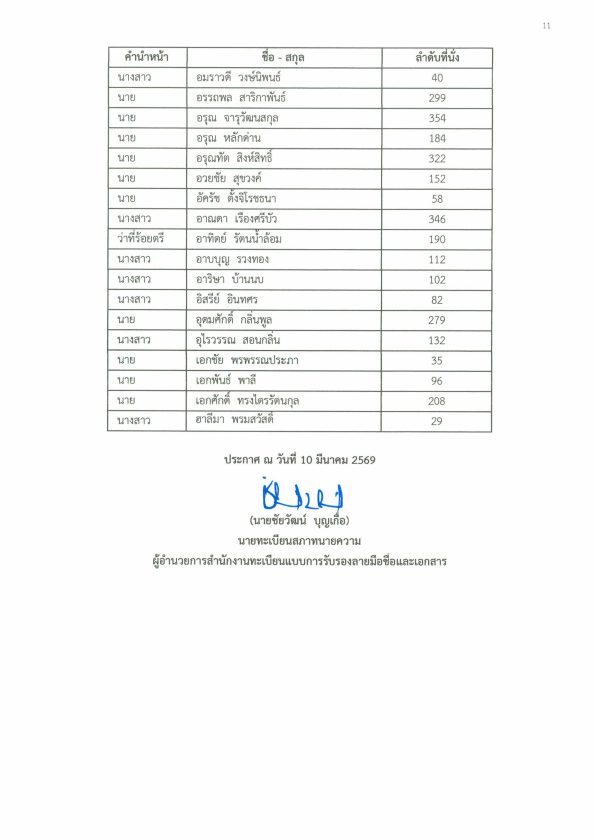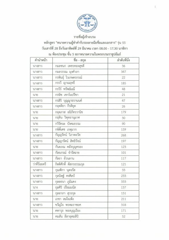 ประกาศรายชื่อผู้เข้าอบรม หลักสูตรทนายความผู้ทำคำรับรองลายมือชื่อและเอกสาร รุ่น 55 10/03/2026Peerapongข่าวสภาทนายความ ประกาศรายชื่อผู้เข้าอบรม หลักสูตรทนายความผู้ทำคำรับรองลายมือชื่อและเอกสาร รุ่น 55 วันเสาร์และอาทิตย์ที่ 28-29 มีนาคม 2569 ณ ห้องประชุมชั้น 5 สภาทนายความในพระบรมราชูปถัมภ์ กรุงเทพมหานคร FacebookFacebookXXLINELine