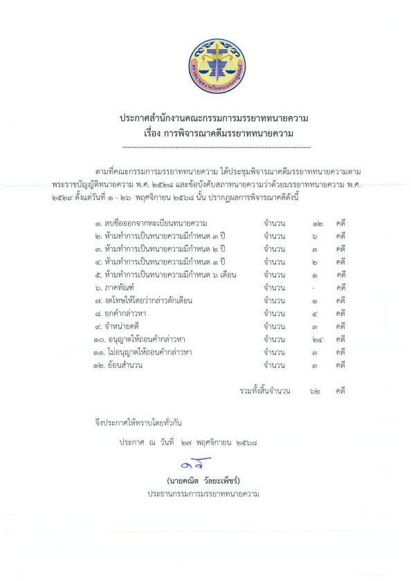 ประกาศสำนักงานคณะกรรมการมรรยาททนายความ เรื่อง การพิจารณาคดีมรรยาททนายความ 27/11/202527/11/2025Peerapongข่าวสภาทนายความ ประกาศสำนักงานคณะกรรมการมรรยาททนายความ เรื่อง การพิจารณาคดีมรรยาททนายความ FacebookFacebookXXLINELine