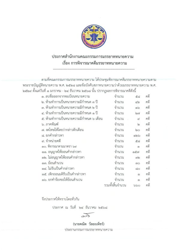 ประกาศสำนักงานคณะกรรมการมรรยาททนายความ เรื่อง การพิจารณาคดีมรรยาททนายความ 24/12/202524/12/2025Peerapongข่าวสภาทนายความ ประกาศสำนักงานคณะกรรมการมรรยาททนายความ เรื่อง การพิจารณาคดีมรรยาททนายความ FacebookFacebookXXLINELine