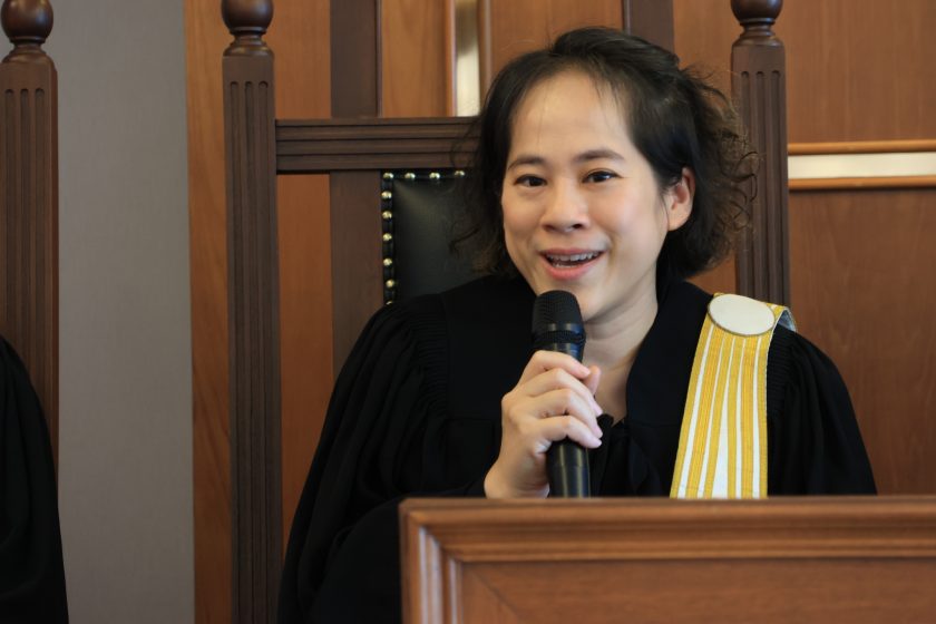 เวลา 14.30 – 16.00 น. มีการจัดกิจกรรมฝึกปฏิบัติในศาลจำลอง (Mock Trial) โดยออกแบบสถานการณ์สมมุติในห้องพิจารณาคดี เพื่อให้ผู้เข้าอบรมได้ทดลองใช้ภาษาอังกฤษอย่างใกล้เคียงกับสถานการณ์จริงในชั้นศาล ทั้งในบทบาทของผู้ต้องหา ทนายความ พยาน และผู้พิพากษา