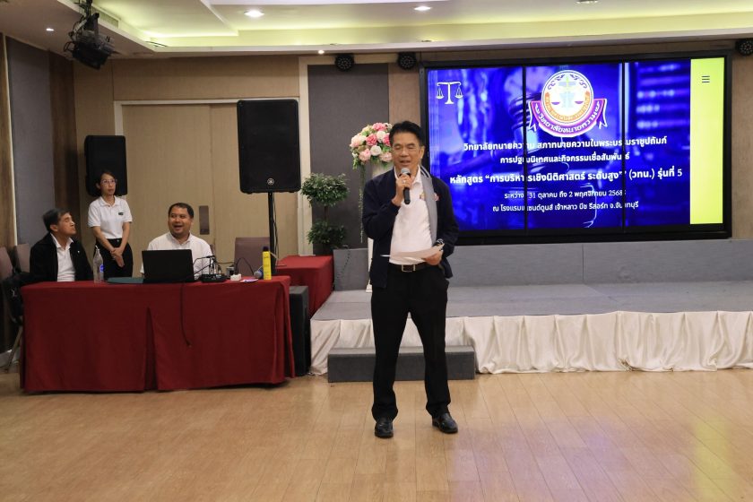 เมื่อวันที่ 31 ตุลาคม – 1 พฤศจิกายน 2568 ผู้เข้ารับการอบรมหลักสูตรการบริหารเชิงนิติศาสตร์ระดับสูง รุ่นที่ 5 ได้เข้าร่วมกิจกรรมเชื่อมสัมพันธ์และเวิร์คช็อป ณ โรงแรมแซนด์ดนส์ เจ้าหลาว บีช รีสอร์ท อำเภอท่าใหม่ จังหวัดจันทบุรี เพื่อเสริมสร้างความสามัคคีและแลกเปลี่ยนประสบการณ์ระหว่างกันในบรรยากาศที่เป็นกันเอง
