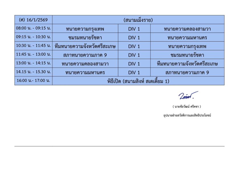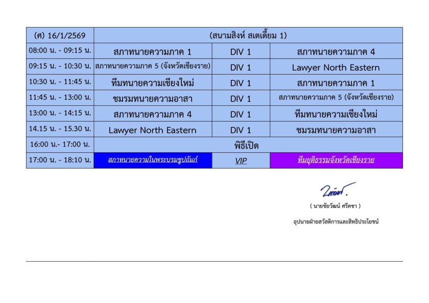สภาทนายความจัดการแข่งขันฟุตบอล ชิงถ้วยพระราชทานสมเด็จพระกนิษฐาธิราชเจ้า กรมสมเด็จพระเทพรัตนราชสุดาฯ สยามบรมราชกุมารี LAWYER’S CUP ครั้งที่ 27 12/01/2026Peerapongข่าวสภาทนายความ สภาทนายความจัดการแข่งขันฟุตบอล ชิงถ้วยพระราชทานสมเด็จพระกนิษฐาธิราชเจ้า กรมสมเด็จพระเทพรัตนราชสุดาฯ สยามบรมราชกุมารี LAWYER’S CUP ครั้งที่ 27 ณ สนามสิงห์ เชียงราย สเตเดียม จังหวัดเชียงราย FacebookFacebookXXLINELine