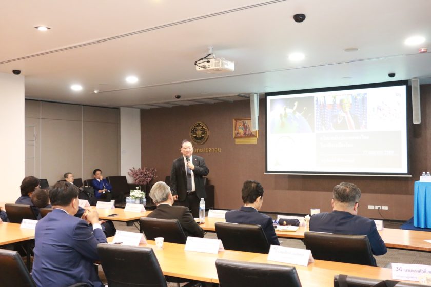 เมื่อวันที่ 17 เมษายน 2569 ณ อาคารสภาทนายความในพระบรมราชูปถัมภ์ ชั้น 4 วิทยาลัยทนายความได้ดำเนินการจัดการบรรยายในหลักสูตร “การบริหารเชิงนิติศาสตร์ระดับสูง” (วทน.) รุ่นที่ 5 โดยมีศาสตราจารย์พรชัย สุนทรพันธุ์ กรรมการผู้ทรงคุณวุฒิ รองศาสตราจารย์ณัฐพงศ์ โปษกะบุตร กรรมการผู้ทรงคุณวุฒิ ให้การต้อนรับ โดยกิจกรรมเริ่มต้นในช่วงเช้าตั้งแต่เวลา 09.00 น. เป็นการบรรยายในหัวข้อ “นโยบายต่างประเทศของไทยในเวทีการเมืองโลก” ได้รับเกียรติจาก ดร.ชัยยงค์ สัจจิพานนท์ อดีตเอกอัครราชทูตไทยประจำสาธารณรัฐเกาหลีและสหรัฐอเมริกา เป็นวิทยากรผู้ทรงคุณวุฒิในการถ่ายทอดความรู้และประสบการณ์ด้านความสัมพันธ์ระหว่างประเทศ ซึ่งได้รับความสนใจจากผู้เข้ารับการอบรมเป็นอย่างมาก โดยมีตัวแทนผู้เข้ารับการอบรมกลุ่มที่ 3 เป็นผู้กล่าวแนะนำและสรุปเนื้อหาพร้อมกล่าวขอบคุณวิทยากร จากนั้นในช่วงบ่ายเวลา 13.30 น. เป็นการบรรยายในหัวข้อ “ป.ป.ช. กับการแก้ไขปัญหาทุจริต” โดยได้รับเกียรติจาก นายนิวัติไชย เกษมมงคล อดีตเลขาธิการคณะกรรมการ ป.ป.ช. มาเป็นวิทยากรบรรยายให้ความรู้เกี่ยวกับแนวทางการป้องกันและปราบปรามการทุจริตในมิติต่างๆ ซึ่งมีความสำคัญอย่างยิ่งต่อการบริหารงานในเชิงนิติศาสตร์ โดยมีตัวแทนผู้เข้ารับการอบรมกลุ่มที่ 3 ดำเนินการแนะนำวิทยากรและสรุปเนื้อหาการบรรยายเช่นเดียวกัน