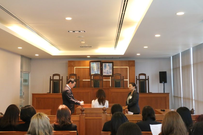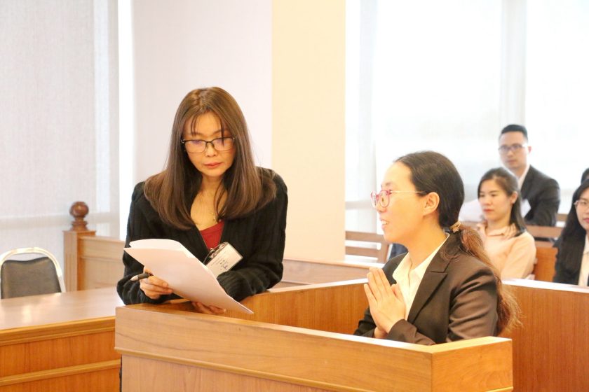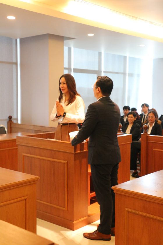 เวลา 13.00 น. มีการจัดกิจกรรมฝึกปฏิบัติในศาลจำลอง (Mock Trial) โดยออกแบบสถานการณ์สมมุติในห้องพิจารณาคดี เพื่อให้ผู้เข้าอบรมได้ทดลองใช้ภาษาอังกฤษอย่างใกล้เคียงกับสถานการณ์จริงในชั้นศาล ทั้งในบทบาทของผู้ต้องหา ทนายความ พยาน และผู้พิพากษา