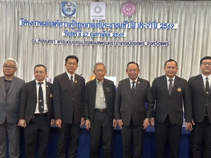 เมื่อวันที่ 27 กุมภาพันธ์ 2569 ณ โรงแรมแพร่นครา อำเภอเมืองแพร่ จังหวัดแพร่ สภาทนายความในพระบรมราชูปถัมภ์ ร่วมกับสภาทนายความจังหวัดแพร่ คณะนิติศาสตร์ มหาวิทยาลัยรังสิต และสาขานิติศาสตร์ คณะสังคมศาสตร์ มหาวิทยาลัยมหาจุฬาลงกรณราชวิทยาลัย (มจร.) วิทยาเขตแพร่ ร่วมกันจัดโครงการเผยแพร่ความรู้ทางกฎหมาย ประจำปี พ.ศ. 2569 โดยมี ดร.ธนพล คงเจี้ยง นายกสภาทนายความ ให้เกียรติเป็นประธานในพิธีเปิดฯ ดร.อุเทน สุขทั่วญาติ ประธานสภาทนายความจังหวัดแพร่ พร้อมด้วยคณะกรรมการสภาทนายความจังหวัดแพร่ คณาจารย์ และนักศึกษาให้การต้อนรับ