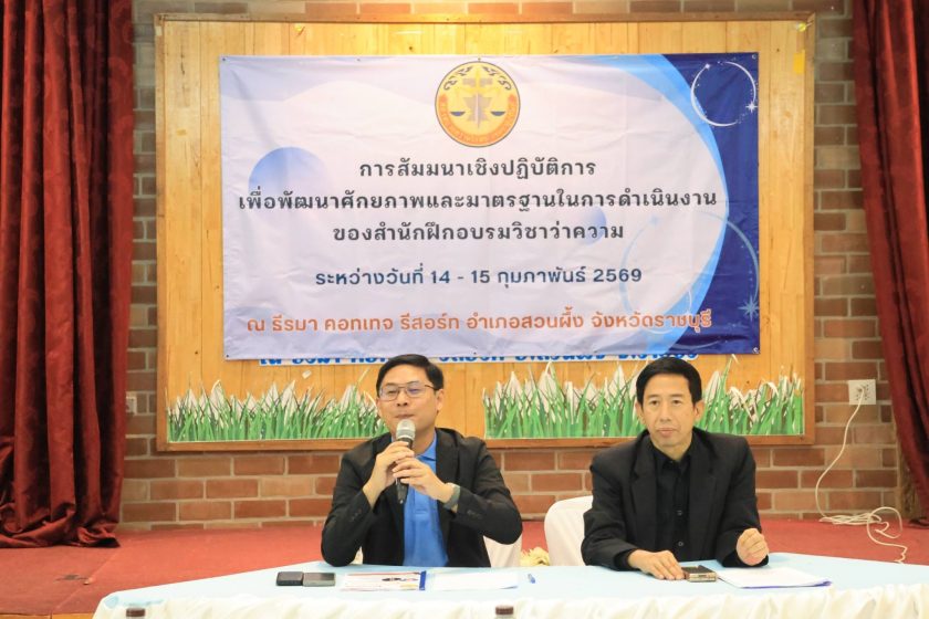 เมื่อวันอาทิตย์ที่ 15 กุมภาพันธ์ 2569 เวลา 09.00 น. ณ ธีรมา คอทเทจ รีสอร์ท จังหวัดราชบุรี : สำนักฝึกอบรมวิชาว่าความ แห่งสภาทนายความ จัดสัมมนาเชิงปฏิบัติการเพื่อพัฒนาศักยภาพและมาตรฐานการดำเนินงานของสำนักฝึกอบรมวิชาว่าความ ซึ่งจัดขึ้นเป็นวันที่สอง