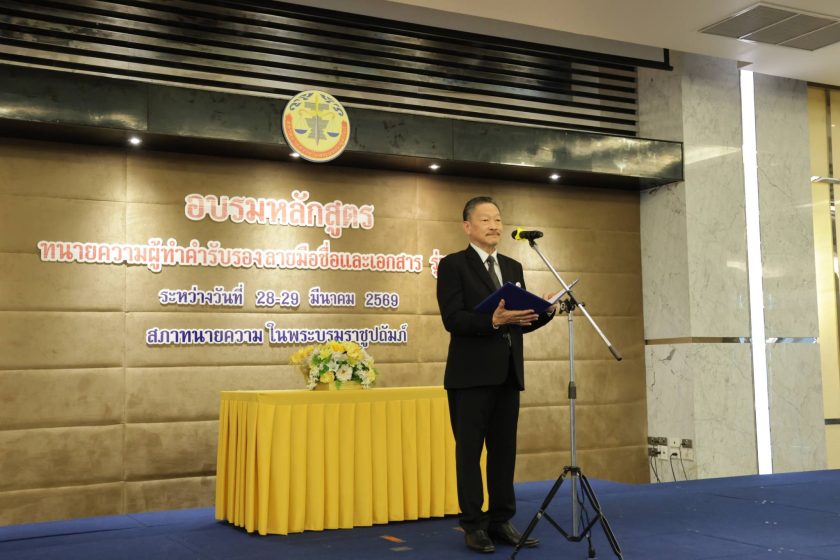 เมื่อวันที่ 29 มีนาคม 2569 ณ ห้องประชุมชั้น 5 สภาทนายความในพระบรมราชูปถัมภ์ : สภาทนายความในพระบรมราชูปถัมภ์ จัดอบรมหลักสูตร “ทนายความผู้ทำคำรับรองลายมือชื่อและเอกสาร” รุ่นที่ 55 วันที่ 2 ขึ้น โดยมีหัวข้อในการอบรมดังนี้