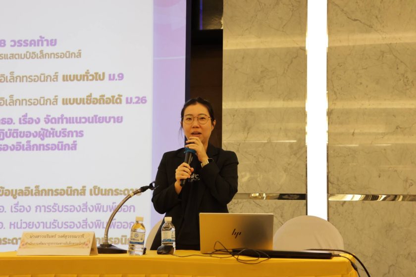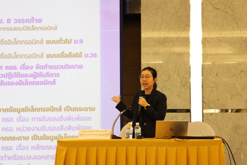 – การรับรองเอกสารทางอิเล็กทรอนิกส์ (E-Notary) บรรยายโดย นางสาวจรินทร์ วงศ์สุวรรณวารี ผู้แทนจากสำนักงานพัฒนาธุรกรรมทางอิเล็กทรอนิกส์ (ETDA)