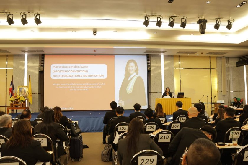 – การทำคำรับรองภายใต้อะโพสทิล (Apostille Convention) กับการ Legalization & Notarization บรรยายโดย นางสาวศรินทร เลืองวัฒนะวณิช คณะทำงาน ร่างพระราชบัญญัติโนตารี