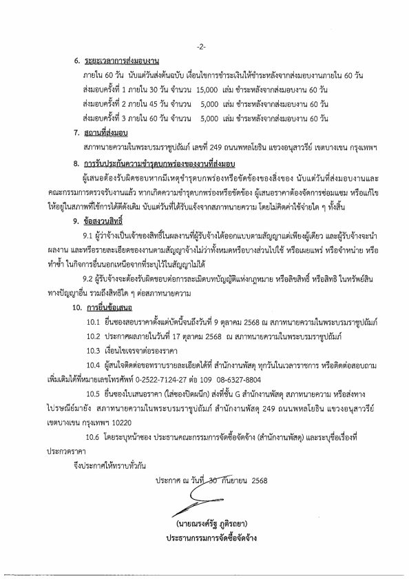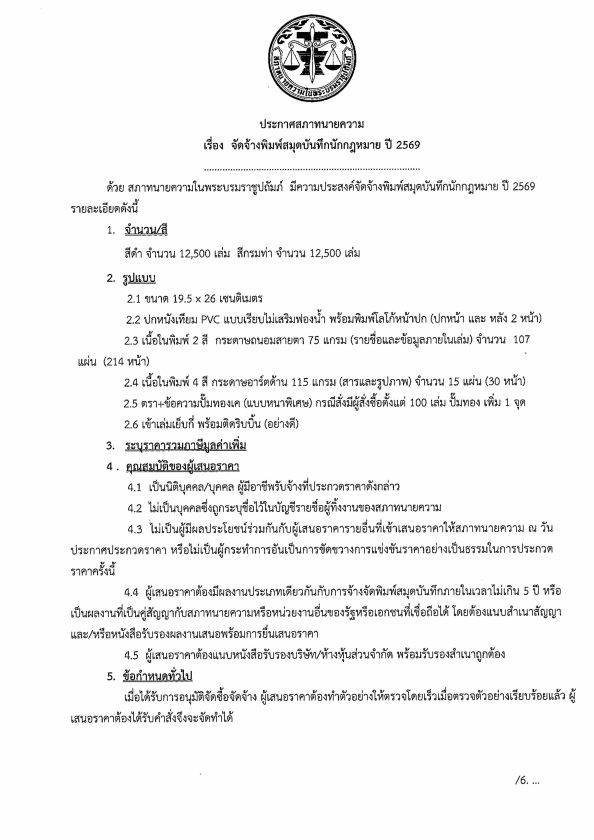 ประกาศสภาทนายความ เรื่อง จัดจ้างพิมพ์สมุดบันทึกนักกฎหมาย ปี 2569 30/09/2025Peerapongประกาศจัดซื้อจัดจ้าง ประกาศสภาทนายความ เรื่อง จัดจ้างพิมพ์สมุดบันทึกนักกฎหมาย ปี 2569 ดาวน์โหลดใบประกาศ : Download FacebookFacebookXXLINELine