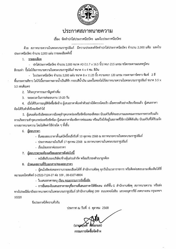 ประกาศสภาทนายความ เรื่อง จัดทำปกใส่ประกาศนียบัตร และใบประกาศนียบัตร 06/10/2025Peerapongประกาศจัดซื้อจัดจ้าง ประกาศสภาทนายความ เรื่อง จัดทำปกใส่ประกาศนียบัตร และใบประกาศนียบัตร ดาวน์โหลดใบประกาศ : Download FacebookFacebookXXLINELine
