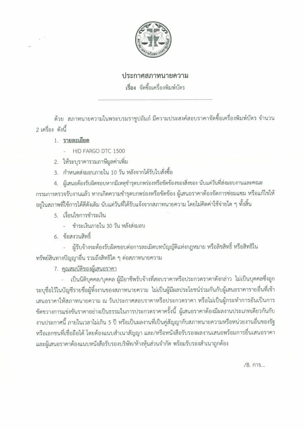 ประกาศสภาทนายความ เรื่อง จัดซื้อเครื่องพิมพ์บัตร 01/12/202501/12/2025Peerapongประกาศจัดซื้อจัดจ้าง ประกาศสภาทนายความ เรื่อง จัดซื้อเครื่องพิมพ์บัตร ดาวน์โหลดใบประกาศ : Download FacebookFacebookXXLINELine