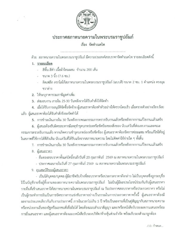 ประกาศสภาทนายความ เรื่อง จัดทำเนคไท 13/02/2026Peerapongประกาศจัดซื้อจัดจ้าง ประกาศสภาทนายความ เรื่อง จัดทำเนคไท ดาวน์โหลดใบประกาศ : Download FacebookFacebookXXLINELine