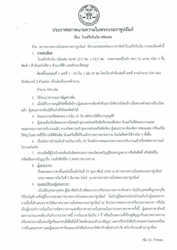 ประกาศสภาทนายความ เรื่อง ใบเสร็จรับเงิน ชนิดเล่ม 19/02/2026Peerapongประกาศจัดซื้อจัดจ้าง ประกาศสภาทนายความ เรื่อง ใบเสร็จรับเงิน ชนิดเล่ม ดาวน์โหลดใบประกาศ : Download FacebookFacebookXXLINELine