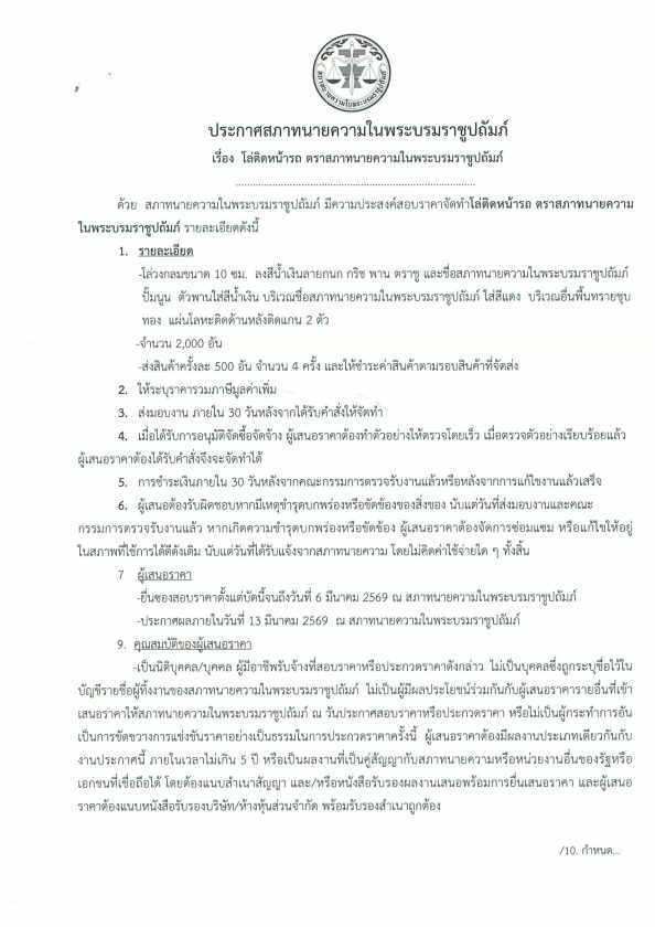 ประกาศสภาทนายความ เรื่อง โล่ติดหน้ารถ ตราสภาทนายความในพระบรมราชูปถัมภ์ 27/02/2026Peerapongประกาศจัดซื้อจัดจ้าง ประกาศสภาทนายความ เรื่อง โล่ติดหน้ารถ ตราสภาทนายความในพระบรมราชูปถัมภ์ ดาวน์โหลดใบประกาศ : Download FacebookFacebookXXLINELine