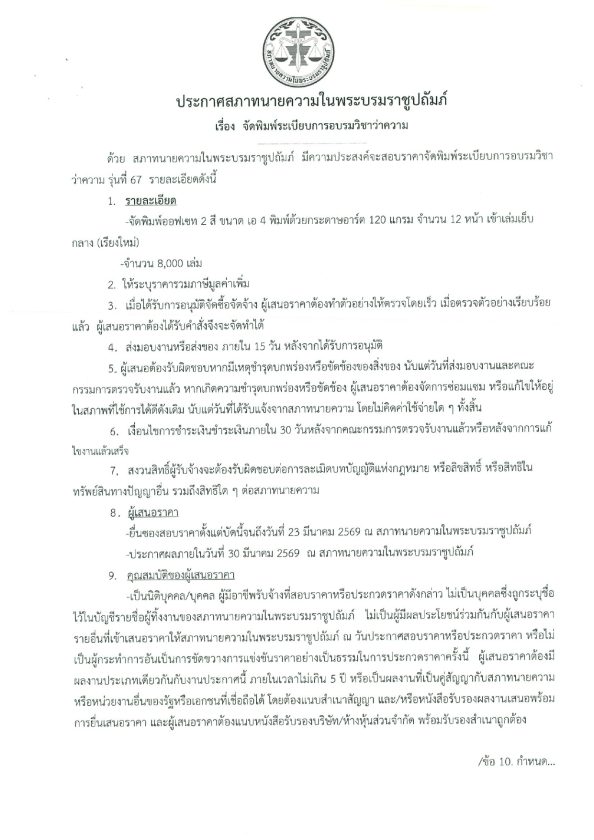 ประกาศสภาทนายความ เรื่อง จัดพิมพ์ระเบียบการอบรมวิชาว่าความ 16/03/2026Peerapongประกาศจัดซื้อจัดจ้าง ประกาศสภาทนายความ เรื่อง จัดพิมพ์ระเบียบการอบรมวิชาว่าความ ดาวน์โหลดใบประกาศ : Download FacebookFacebookXXLINELine
