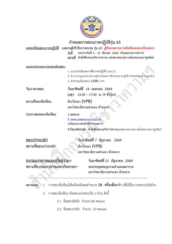 สอบวันอาทิตย์ที่ 19 เมษายน 2569 เวลา 13.30 – 17.30 น. ณ มหาวิทยาลัยรามคำแหง หัวหมาก