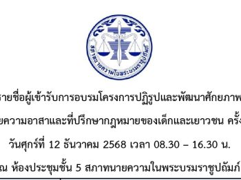 -สำนักฝึกอบรมวิชาว่าความฯ จะไม่รับฝากสิ่งของหรือสัมภาระใดๆ ของนักศึกษา