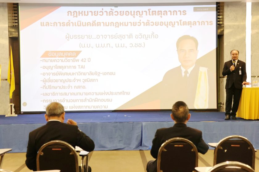 ในการอบรมในครั้งนี้ได้รับเกียรติจากอาจารย์สุชาติ ขวัญเกื้อ กรรมการอำนวยการสำนักอนุญาโตตุลาการ TAI บรรยายหัวข้อ กฎหมายว่าด้วยอนุญาโตตุลาการและการดำเนินคดีตามกฎหมายว่าด้วยอนุญาโตตุลาการ