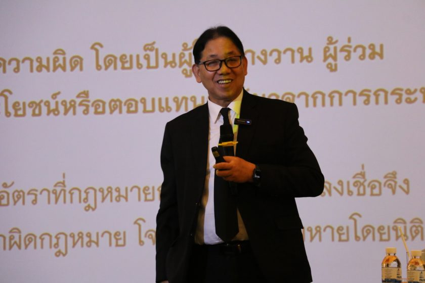 จากนั้นในเวลา 13.00 น. ดร.สันติ ผิวทองคำ ผู้พิพากษาหัวหน้าคณะชั้นต้นในศาลจังหวัดวิเชียรบุรี (จังหวัดเพชรบูรณ์) บรรยายหัวข้อ วิธีการสืบสวนสอบสวนคดีอาญา เทคนิคในการเตรียมคดีและการแสวงหาพยานหลักฐานสำหรับคู่ความในคดีอาญา