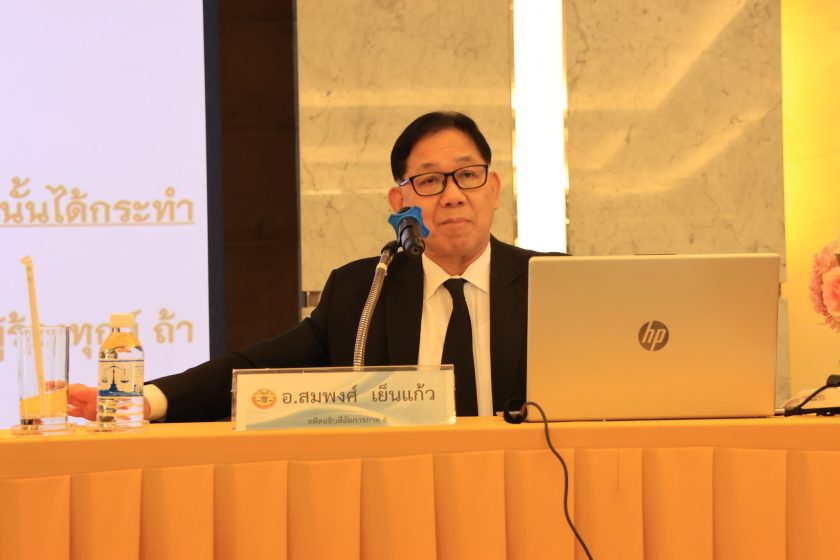 จากนั้นในช่วงบ่ายอาจารย์สมพงศ์ เย็นแก้ว อดีตอธิบดีอัยการ ภาค 6 บรรยายหัวข้อ การดำเนินคดีอาญา (อัยการ)